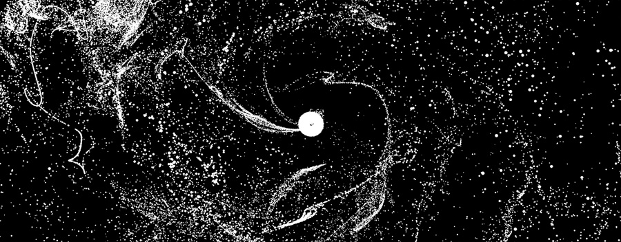 NaN:Collider is an audiovisual performance, started in 2016 by João Martinho Moura and António Rafael, devoted to the science, arts and space exploration. NaN is a numeric data type value representing an undefined or unpresentable value, something impossible to calculate. Collider refers to an opposite concept to that, something very concrete, used as a research tool in particle physics by accelerating particles to very high kinetic energy. On this project they invited Miguel Pedro, to work with them with sounds which result from a research process in experimental electronic music developed at the International Iberian Nanotechnology Institute. The artists take the public for a travel into deep space, starting on earth, flying to the moon, passing through a spiral galaxy in formation, facing a black hole and finishing at the nanoscale.