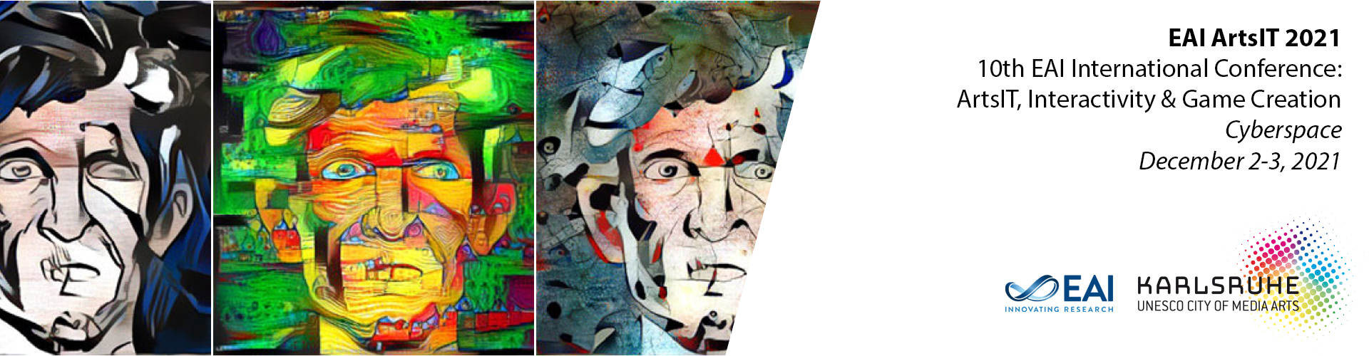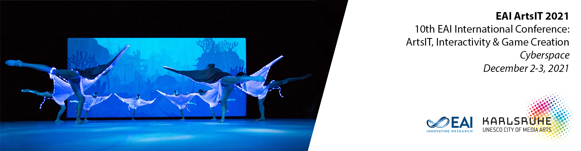 ArtsIT takes place from December 2nd to 4th as a hybrid event at the UNESCO Creative City of Media Arts Karlsruhe, Germany, and in Cyberspace. The conference brings together researchers, practitioners, artists, and academia to present and discuss the symbiosis between art and information technology. Since 2009 ArtsIT has become a leading scientific forum for the dissemination of cutting-edge research results in the intersection between art, science, culture, performing arts, media, and technology. The role of artistic practice using digital media is also to serve as a tool for analysis and critical reflection on how technologies influence our lives, culture, and society. ArtsIT is therefore not only a place to discuss technological progress but also a place to reflect on the impact of art and technology on sustainability, responsibility, and human dignity. Besides the main track, the event also focuses on the advances seen in two areas that have significantly contributed to the field in the last years, namely, virtualization and artificial intelligence with special sessions (see call for special sessions below).