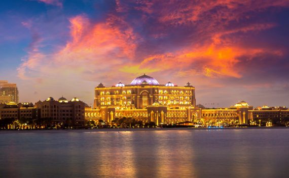 Emirates Palace, Mandarin Oriental Abu Dhabi is an enchanting fusion of luxurious comfort, impeccable service, and unique dining experiences. From a distance, the hotel resembles something from an Arabian fairytale, with the main building stretching over one kilometer from wing to wing and expansive gardens covering 100 hectares. Featuring 114 domes, the central dome rises to an impressive 72.6 meters above the ground, meticulously adorned with gold, mother of pearl, and crystals. The building houses 1,002 chandeliers, with the largest weighing 2.5 tons, and showcases other visually striking features, including two handmade wall displays depicting the palace.